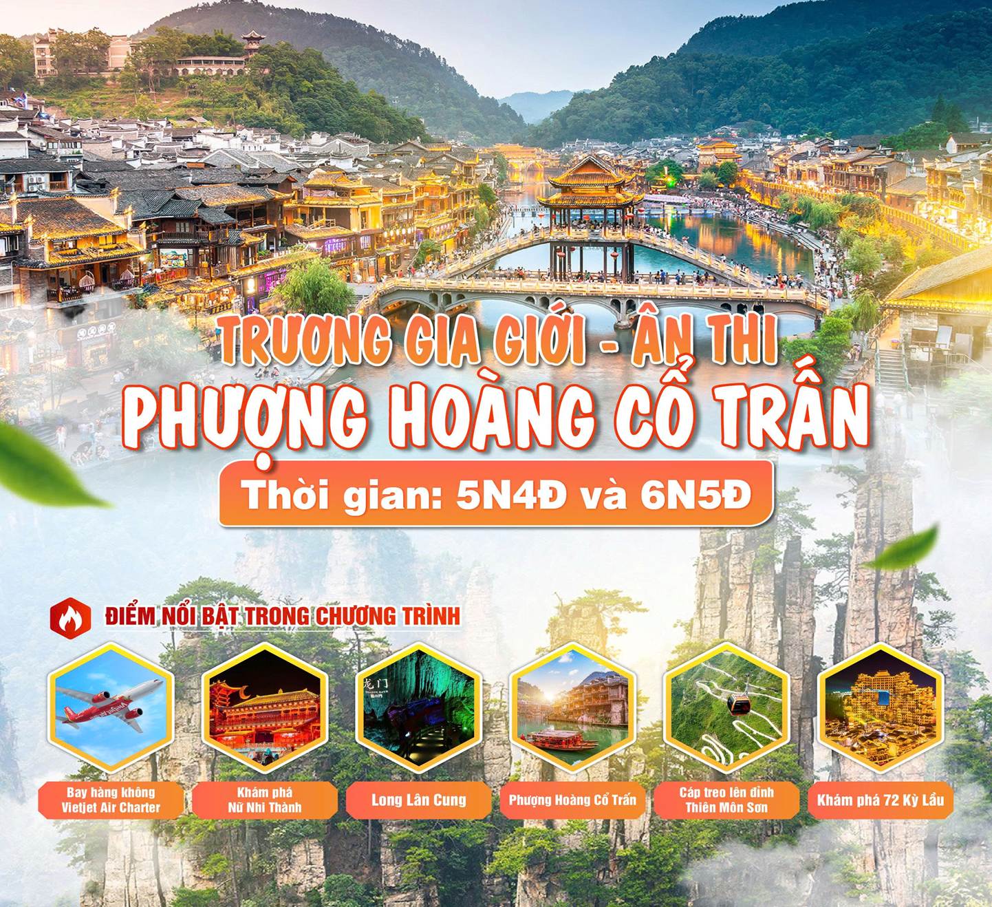 Hành trình 6N5Đ Trương Gia Giới – Ân Thi – Phượng Hoàng Cổ Trấn, trải nghiệm trọn vẹn tuyệt cảnh Hồ Nam, kết hợp thiên nhiên ngoạn mục và văn hóa bản địa.